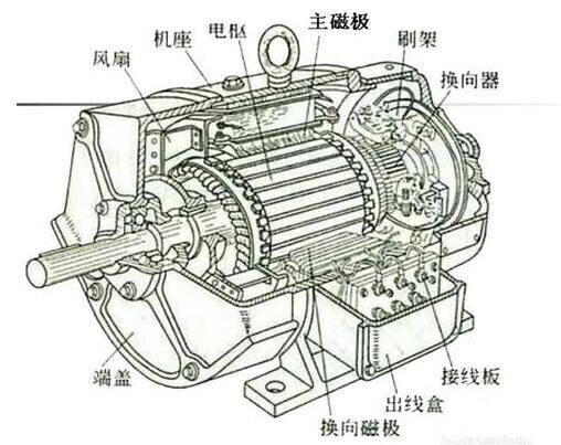 轉(zhuǎn)子部分的電樞鐵芯是主磁路的組成部分,電樞繞組由一定數(shù)目的電樞線圈按照一定的規(guī)律鏈接組成,是直流電機(jī)的電路部分,產(chǎn)生感生電動(dòng)勢(shì),進(jìn)行機(jī)電能量的轉(zhuǎn)換。而換向器主在直流發(fā)電機(jī)中主要起整流的作用,而在電動(dòng)機(jī)中起的是逆變作用。
