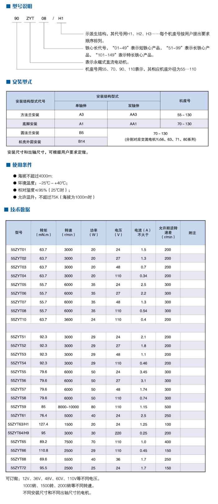 本系列電機可與多種系列減速器相配合,滿足用戶對轉速、轉矩、安裝工位的不同要求。
